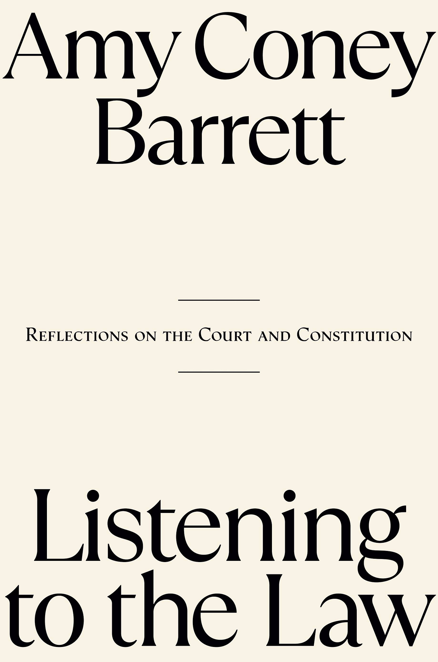 Last night I had the great fortune to sit down with Justice Amy Coney Barrett to talk about her new book, Listening to the Law: Reflections on the Court and Constitution. This was for an event at the University Club of Chicago, with the Chicago Institute of Politics, and there was no public recording of the event, so I will just say that I left the event extremely impressed by her integrity and commitment to her judicial oath.